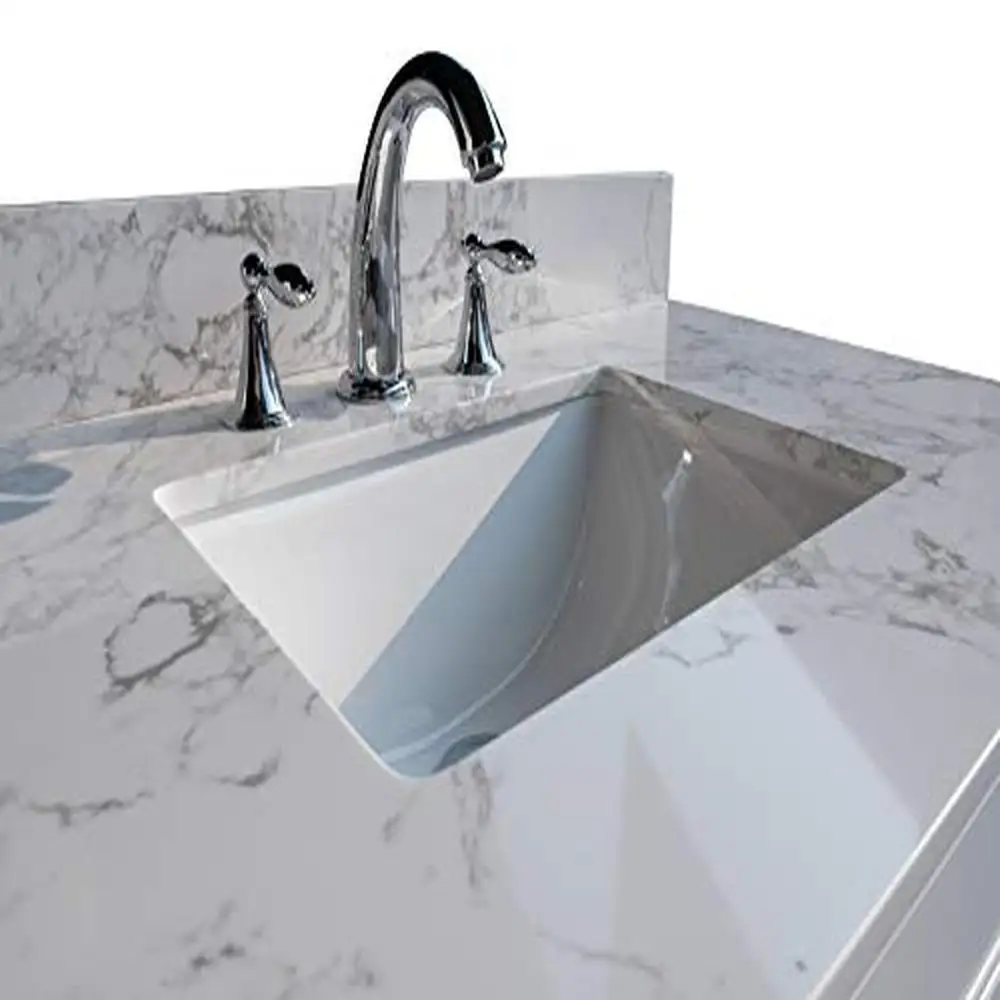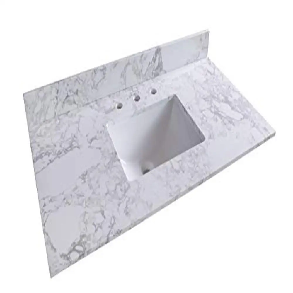 [Easy to Installation] Top pre-drilled for 8-inch widespread faucet Assembled stylish rectangular white vitreous china under mount bowl with safety overflow hole This top is perfect for quick and easy remodels Obtain the beauty and durability of marble without hiring a professional